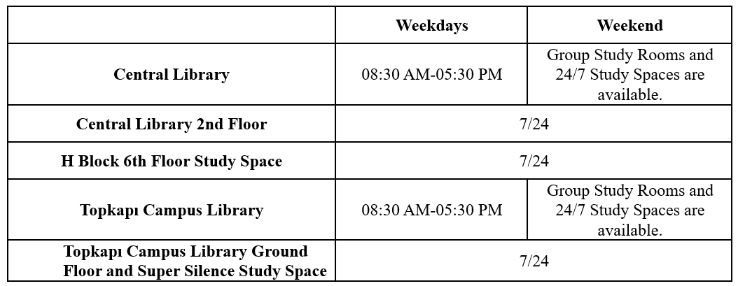 Due to the mid-term break, the Library hours have been updated. The Library hours for the period between January 20, 2026, and February 16, 2026, are listed below.